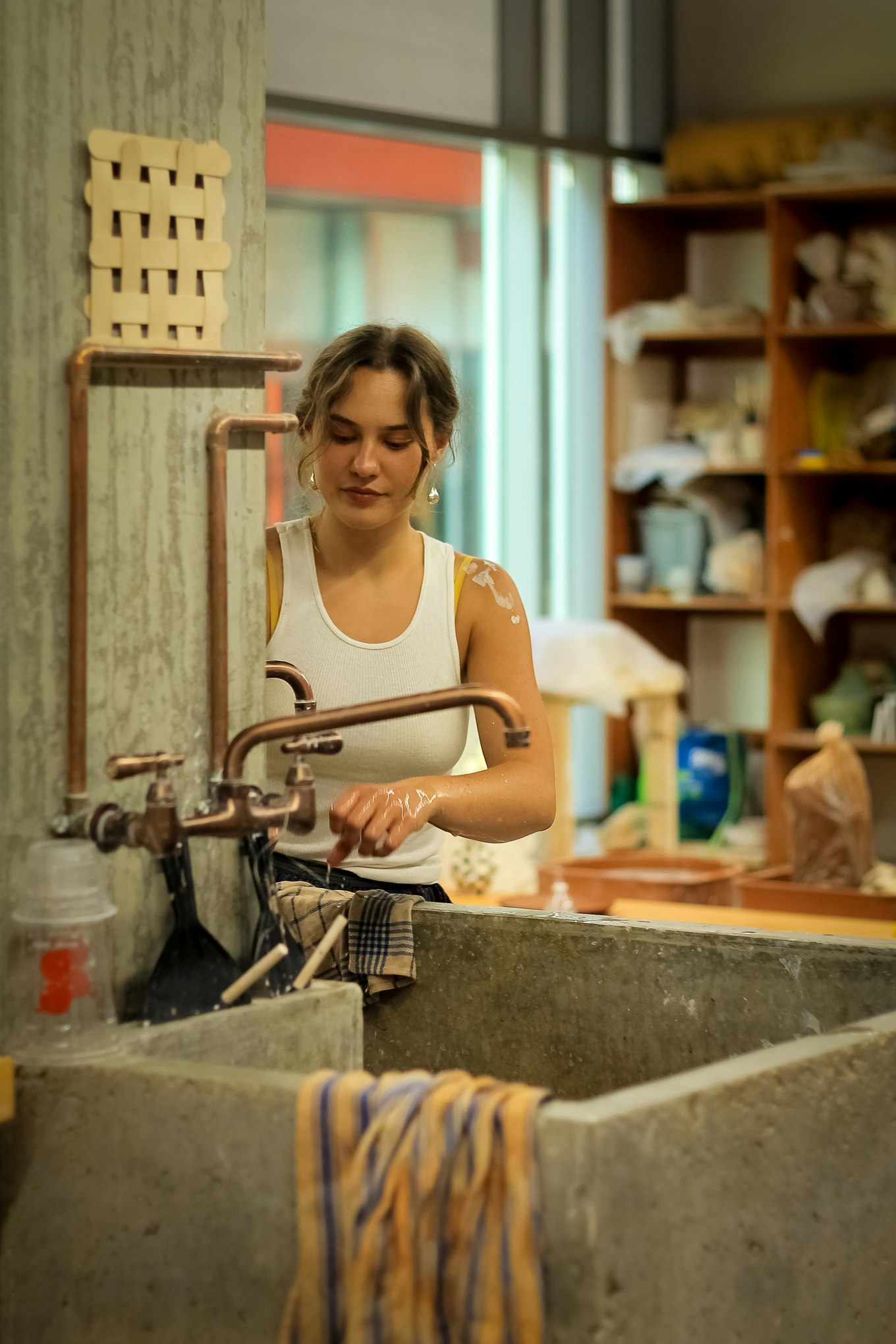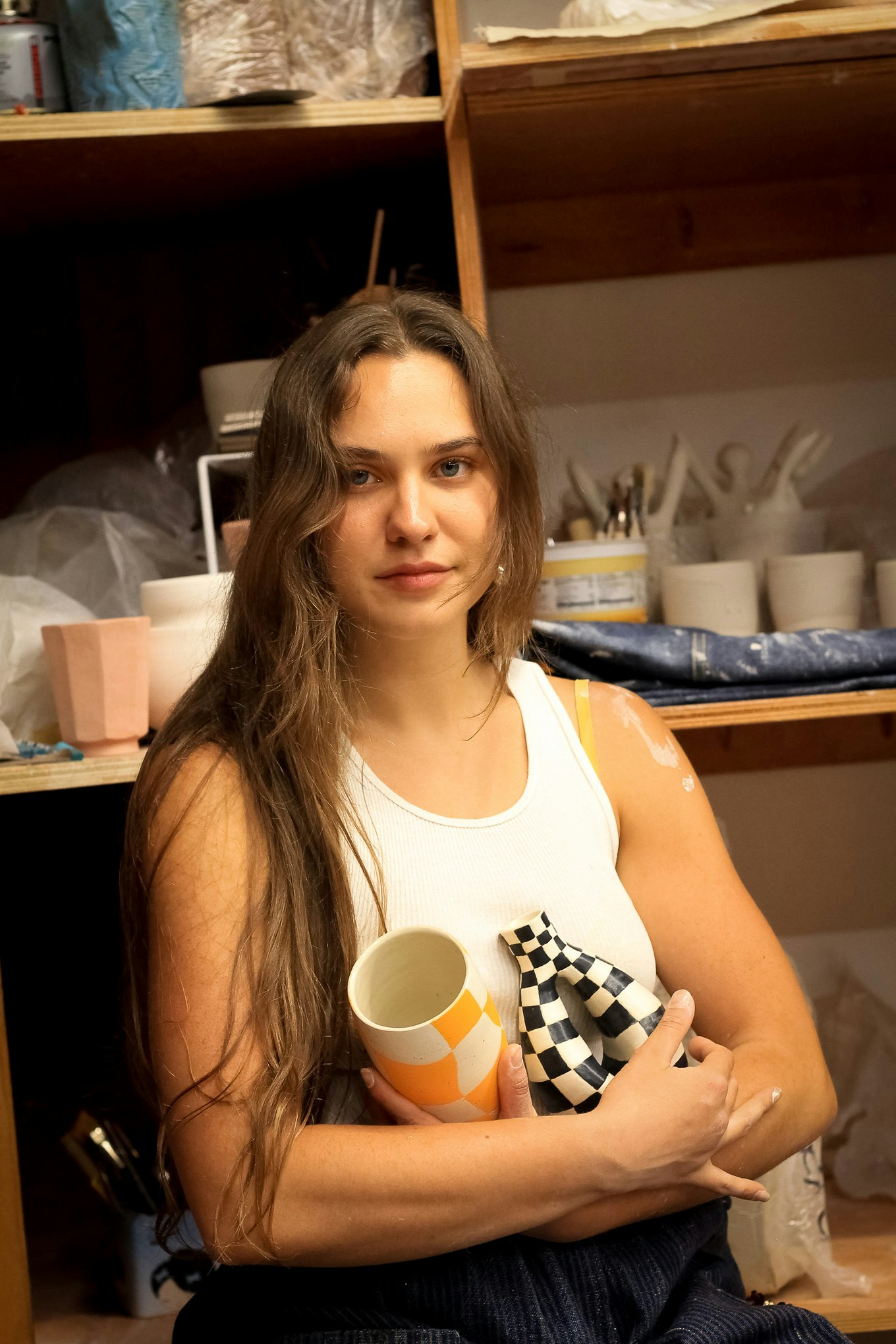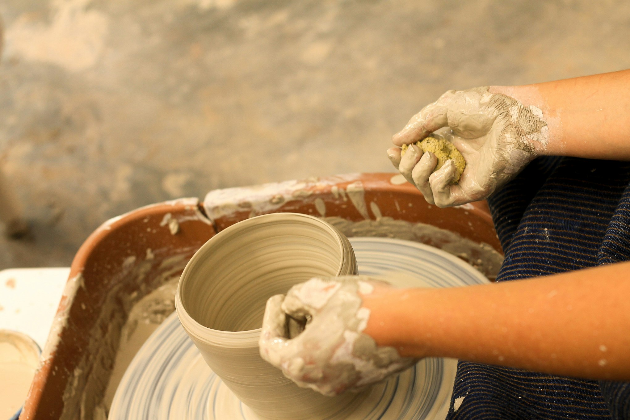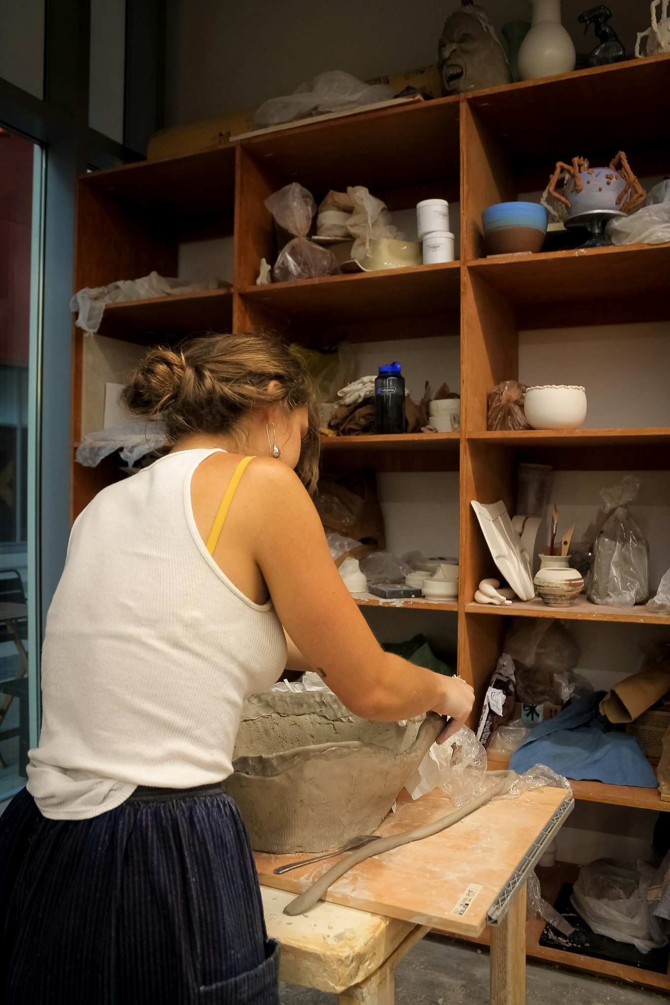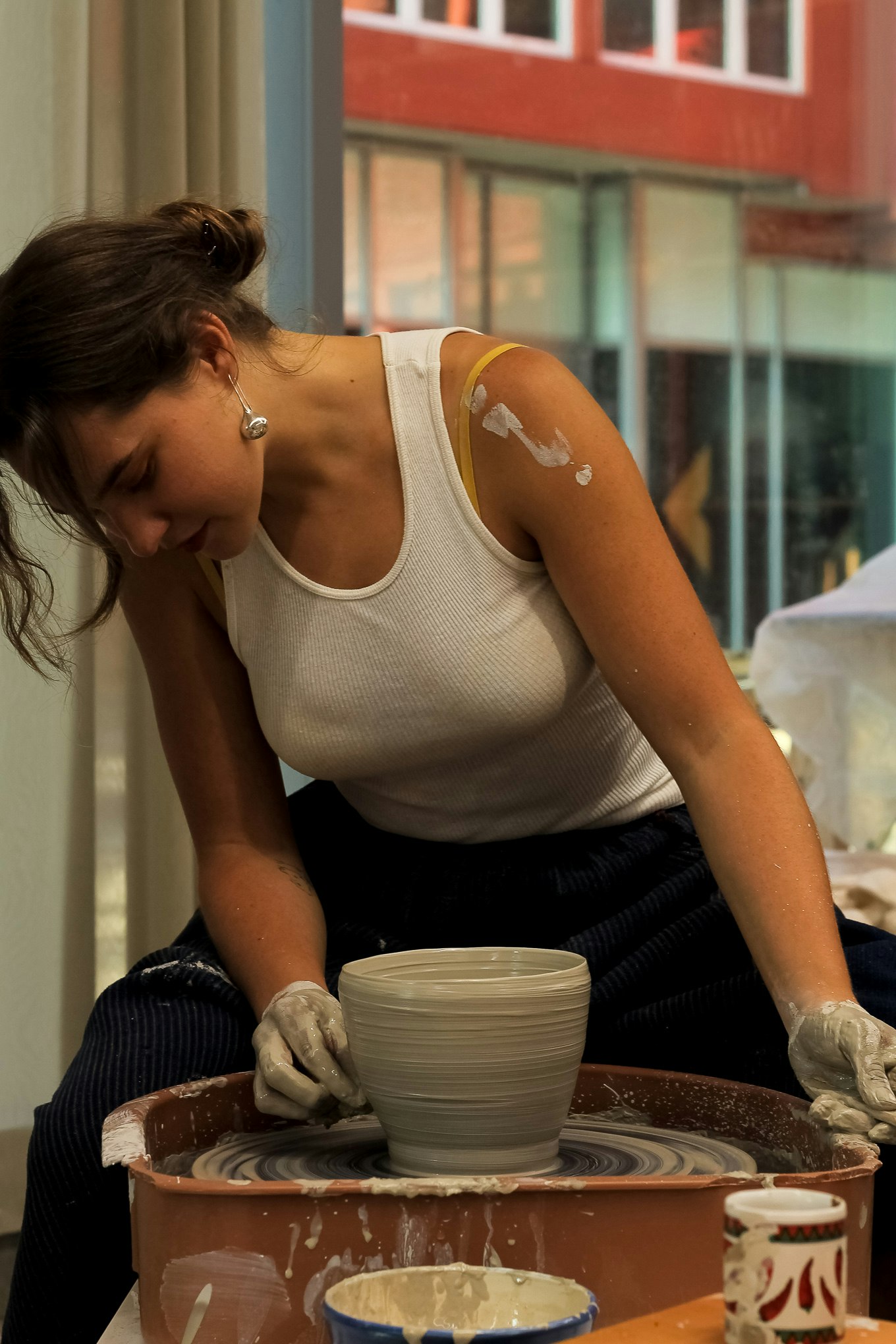 Rachel shaping some pottery, and showing us some of her work in Chinatown, Los Angeles CA